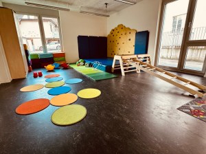Im Familienzentrum stehen uns zwei grosse, helle und vielfältig eingerichtete Räume zur Verfügung. Hier können die Kinder frei spielen, werken, basteln, sich bewegen und turnen. Zusätzlich nutzen wir den grossen Garten draussen, der den Kindern viel Platz zum Entdecken und gemeinsamen Spielen schenkt.